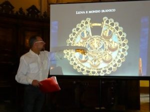 In data 23 giugno 2018 la Prof.ssa Cecilia Prete ha ospitato Germano Leporati, in qualità di archeologo, inserito sia nel programma “Lezione con l’esperto”, sia nel calendario eventi della mostra “Fly me to the Moon”, da lei diretti, per un approfondimento dedicato alla Luna nella trattazione di reperti archeologici museali. Il tema dell’incontro, infatti, è stato: “La Luna, il Sole e le altre Stelle nelle immagini dell’antichità”. L’interessante iniziativa culturale, aperta non solo agli alunni del corso di disegno & pittura, ma a tutta la cittadinanza, si è svolta nella location dell’esposizione, presso il Coro delle Monache della Chiesa di Santa Caterina. Molti i rimandi tra le opere esposte realizzate dagli studenti del corso e le opere citate dal gradito ospite, che hanno permesso una maggior comprensione e consapevolezza del soggetto trattato.