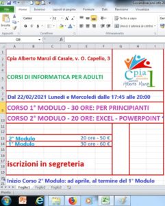 A seguire, nel mese di aprile si terrà il 2° Modulo, per complessive 20 ore (costo: 50 €), con gli stessi orari e prevede lezioni su Microsoft Excel, PowerPoint e ripresa di funzioni avanzate di Word.