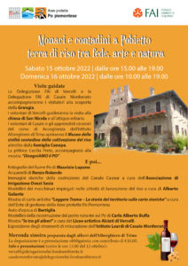 La manifestazione, accolta da Dino Canepa e famiglia, abitanti della Grangia e autori del “Museo della civiltà contadina della coltivazione del riso”, con il coordinamento delle Presidenti delle delegazioni FAI di Vercelli, Paoletta Picco e di Casale, Cristina Debernardi Bonzano, si presenta densa di iniziative.